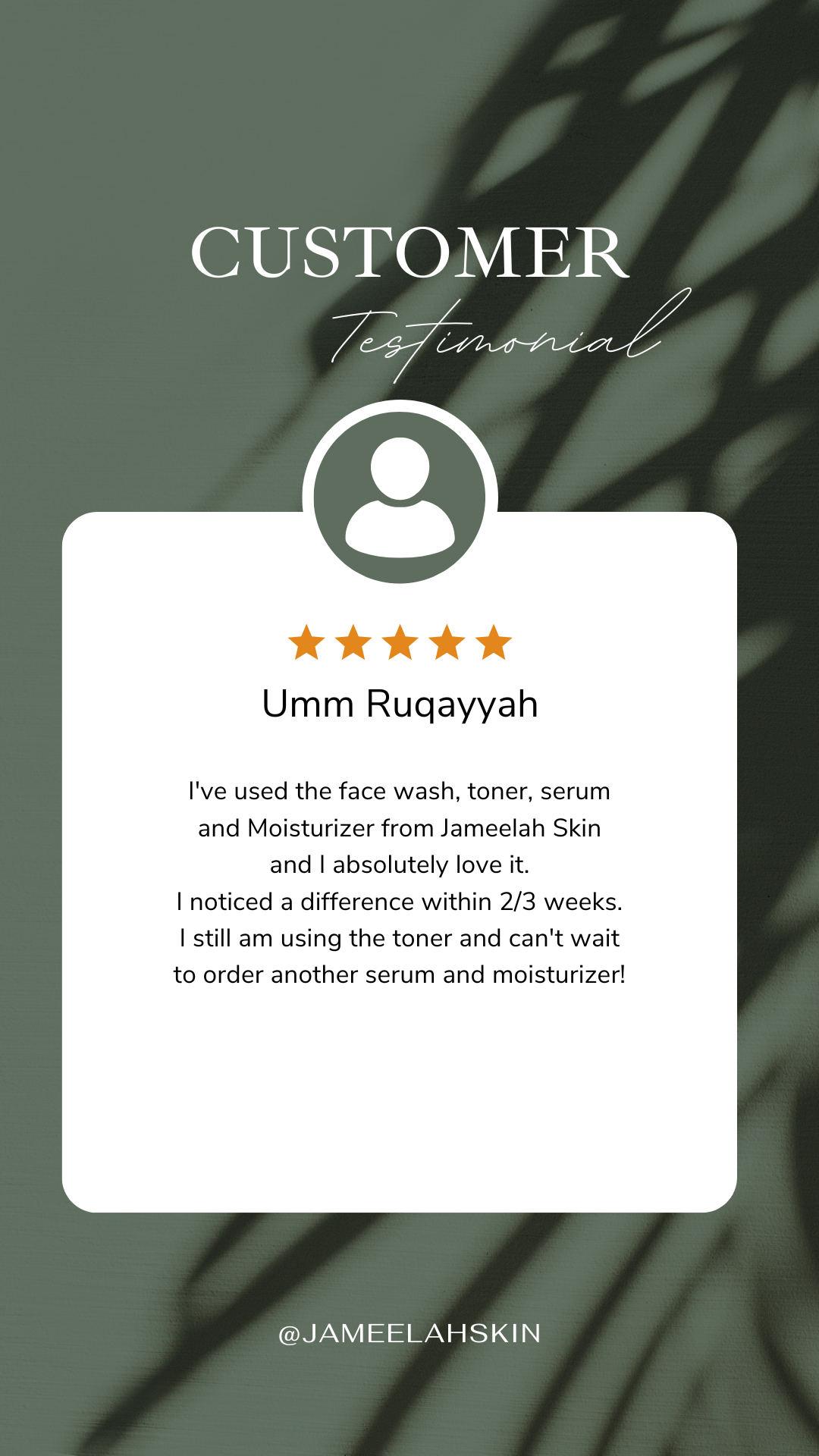 It's been a pleasure ordering from jameelah online. She's so sweet and always happy to help out and answer any questions. This serum is presented well and easy to use, makes my skin feel soft and hydrated. I am excited to see results soon and will update with my experience