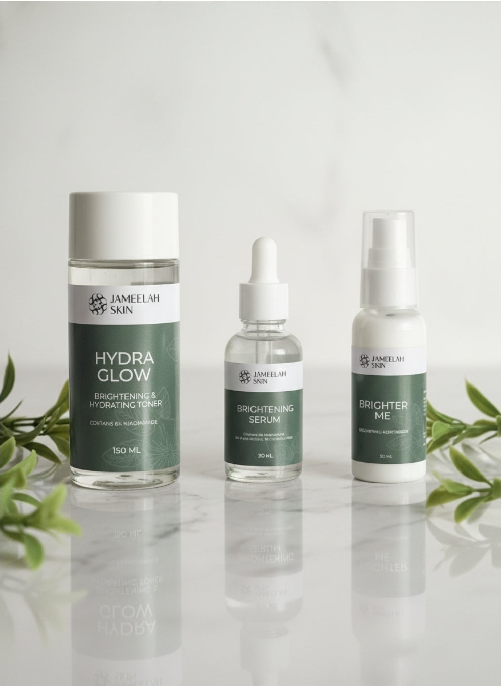 🌿 Brightening Serum – Fades dark marks, strengthens barrier, boosts glow.